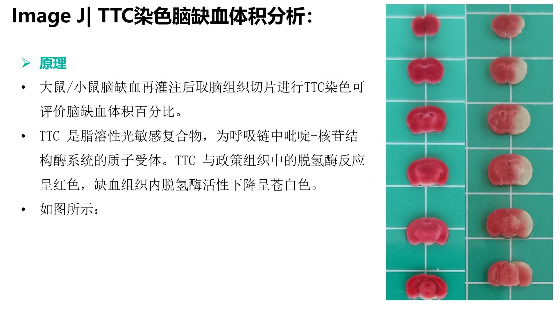 大家好!今天普拉特澤生物繼續跟大家一起學習新的實驗——TTC染色。TTC染色原理是基于TTC(2,3,5—氯化三苯基四氮唑)與活細胞線粒體內的琥珀酸脫氫酶之間的特異性化學反應