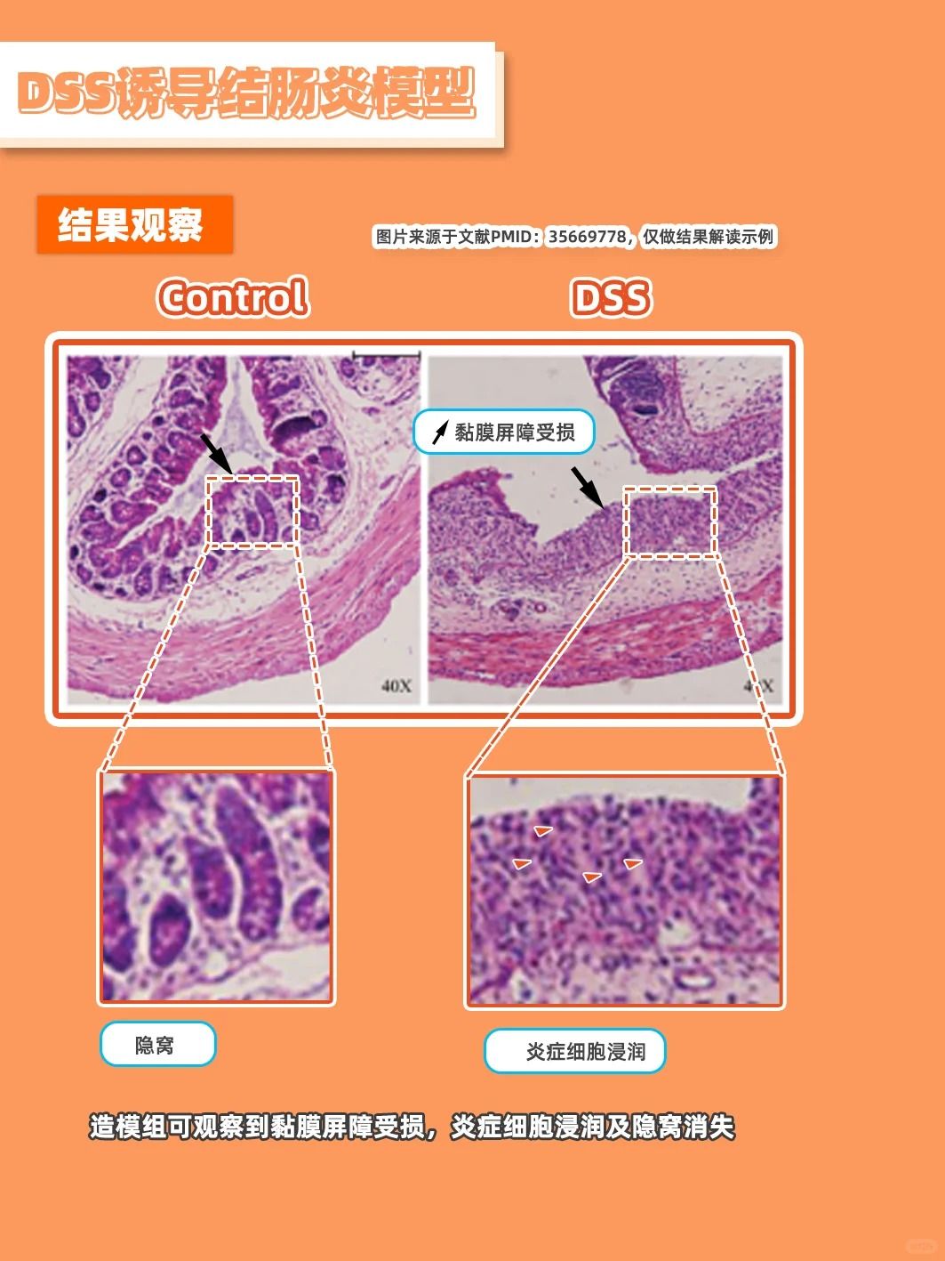 ?●優(yōu)化造模方法?:根據(jù)研究目的和實驗條件選擇合適的造模方法,如DSS誘導(dǎo)法、TNBS誘導(dǎo)法或惡唑酮誘導(dǎo)法等,并嚴(yán)格控制造模參數(shù),如DSS濃度、TNBS劑量和注射方式等。