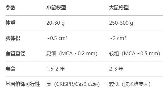 小鼠:代謝更快,梗死進(jìn)展更迅速(適合急性缺血研究)。