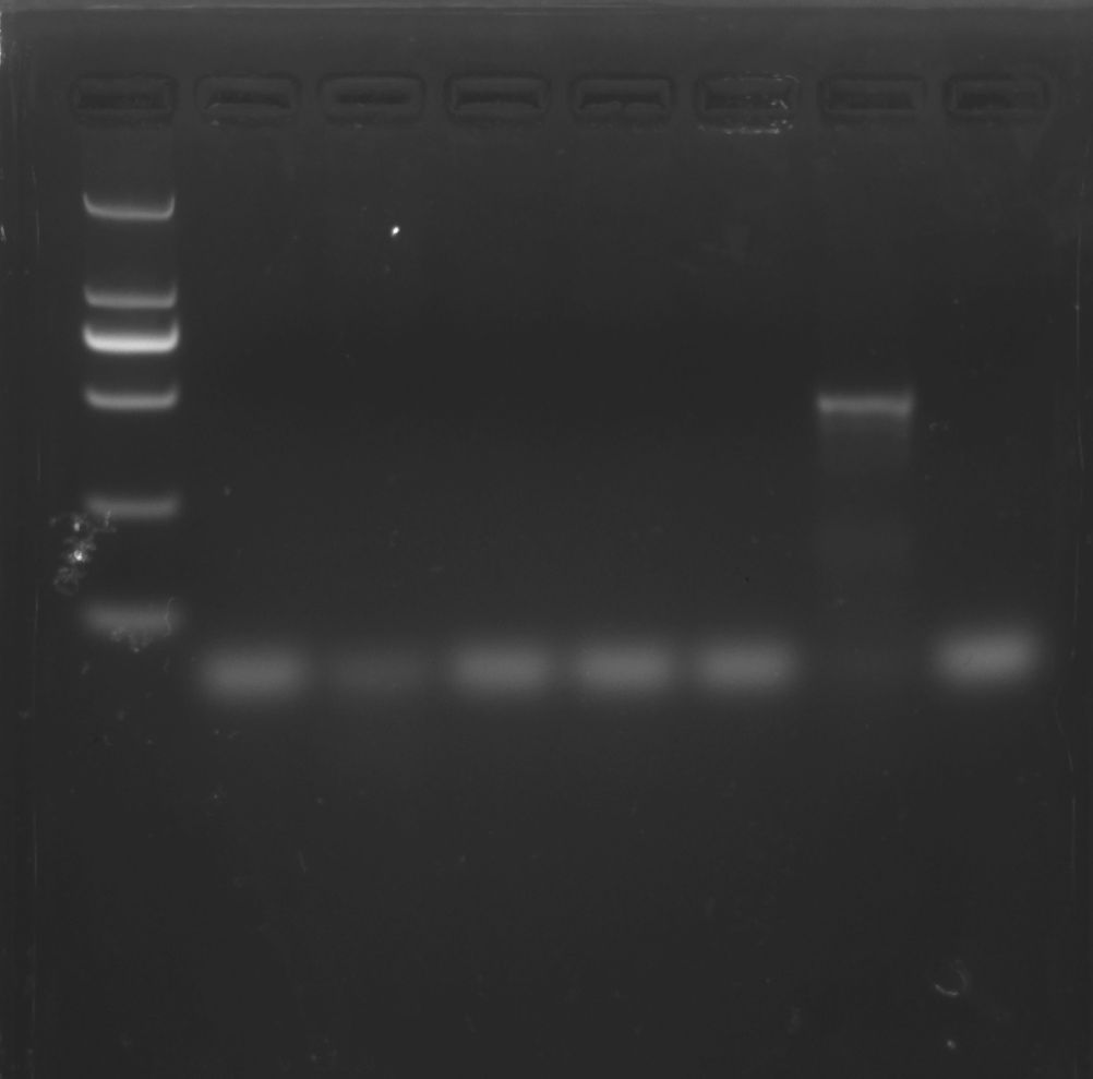 5)預先配置好1~1.5%的瓊脂糖膠,將完成的PCR反應液依次加入到膠孔中并選擇合適的Marker進行瓊脂糖凝膠電泳。
