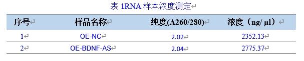 (6)     RNA濃度檢測:使用核酸蛋白檢測儀檢測RNA濃度。