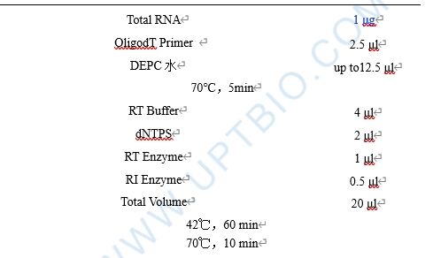 1. 按以下組份分別配制逆轉錄反應液
