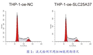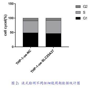 流式細胞術檢測THP-1-oe-NC、THP-1-oe-SLC25A37的周期情況變化。