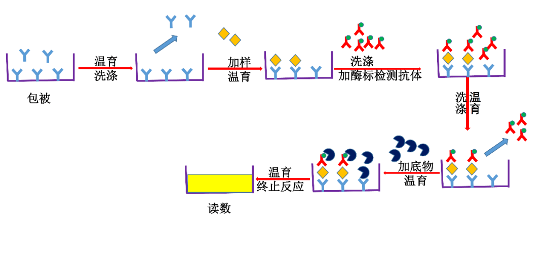 [7]結(jié)果判定:通過測量有色產(chǎn)物的吸光度,與標(biāo)準(zhǔn)曲線對照,計算待測樣本中抗原或抗體的含量。