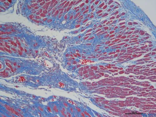 Step6:復染:接下來,使用Masson麗春紅酸性復紅液對切片進行復染。這一步的目的是增強膠原纖維和其他組織結構的顯色效果。