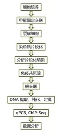 ChIP實驗基于特異性抗體識別目標蛋白與DNA形成的復合物原理。實驗流程主要包括以下幾個步驟: