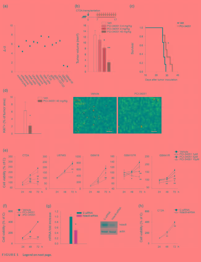 一、抑制HDAC8降低膠質瘤的生長,延長小鼠的存活期