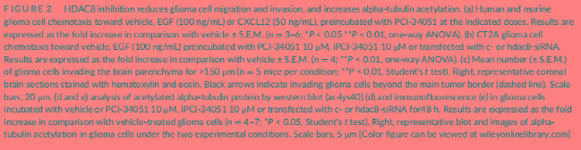 第二步,研究發現HDAC8調節α-tubulin蛋白乙酰化從而驅動膠質瘤細胞遷移和侵襲。
