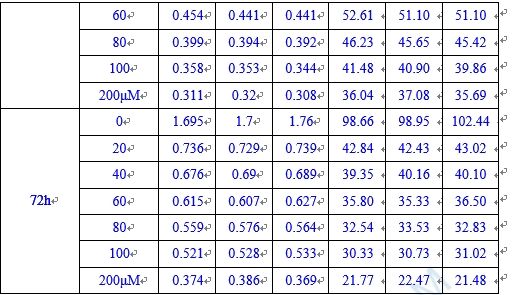 表1:CCK8法檢測各組細胞OD值(450nm)及相對存活率-SP600125