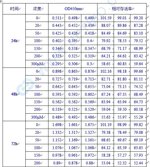 表2:CCK8法檢測各組細胞OD值(450nm)及相對存活率-P53抑制劑