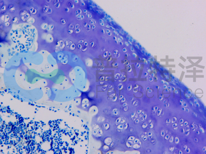 甲苯胺藍(lán)是常用的人工合成染料的一種,屬醌亞胺染料類。含有兩個(gè)發(fā)色團(tuán)和助色團(tuán)使切片上的組織細(xì)胞著色,臨床上常用甲苯胺藍(lán)對(duì)軟骨細(xì)胞和肥大細(xì)胞進(jìn)行染色。