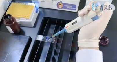 Step7:樣本封片: 在透明處理完畢后的組織上方滴加中性樹膠,玻片稍傾斜,用手將蓋片順玻片斜面輕放,防止氣泡產(chǎn)生。封片前需要烤干切片上的水分,否則鏡下觀察時(shí)有一層水霧,導(dǎo)致細(xì)胞輪廓不清楚。封片時(shí)只需用一次性滴管滴一兩滴即可,過少導(dǎo)致封片不完全,過多則容易中性樹膠外溢影響保存。