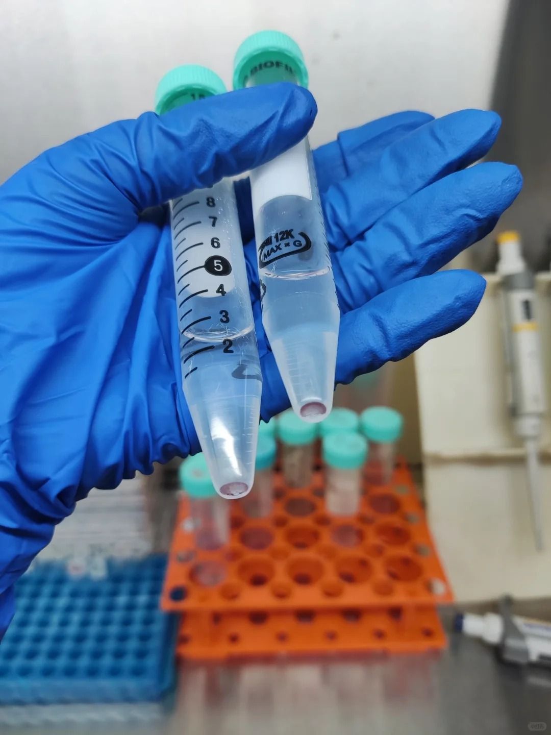 ⒊靜置3-5分鐘后,用注射器抽取腹腔灌洗液至離心管中。