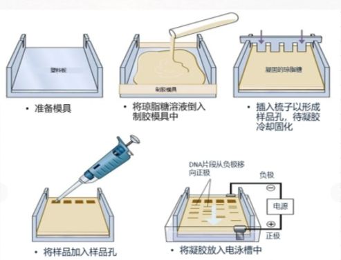 答:瓊脂糖凝膠電泳是一種常用于生物化學和分子生物學實驗的技術,用于分離和鑒定DNA、RNA和蛋白質等生物大分子。