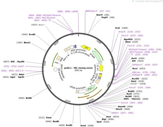 在shRNA序列末尾添加5-6個T作為RNA聚合酶III的轉(zhuǎn)錄終止信號。