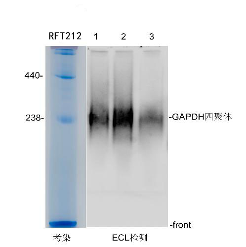 2. 分析蛋白質聚集體或蛋白質-蛋白質相互作用:NativePAGE可以用于分析蛋白質復合物。由于保留了蛋白間的相互作用,因此某些蛋白質也可能會以多亞基復合物的形式一起遷移,并以不可預測的方式移動。這種復合物常表現為彌散狀條帶,而非通常所見的清晰的條帶。