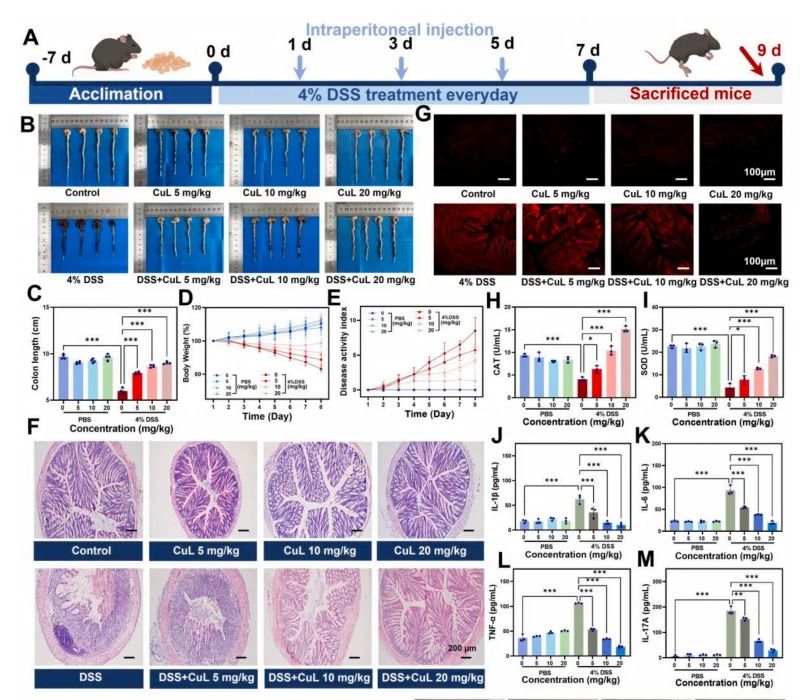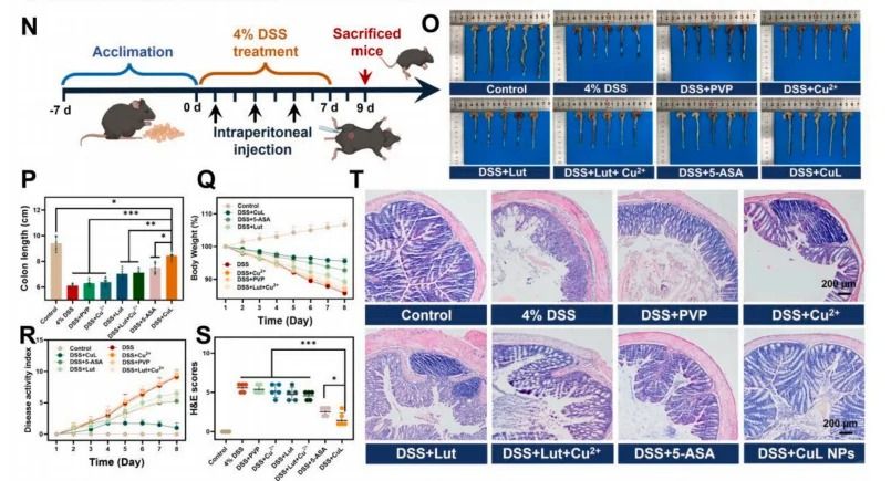 4.動物模型:在典型的IBD小鼠模型(如潰瘍性結(jié)腸炎和克羅恩病)中驗(yàn)證CuL NCs的預(yù)防和治療效果。