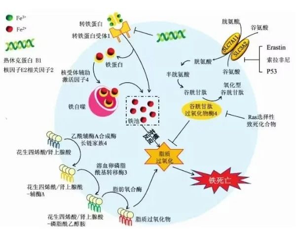 細胞鐵死亡(Ferroptosis)是一種新型的程序性細胞死亡形式,主要由鐵依賴性脂質過氧化物的積累導致。鐵死亡的發生機制涉及鐵代謝紊亂、氨基酸抗氧化系統失衡以及脂質過氧化物的集聚。