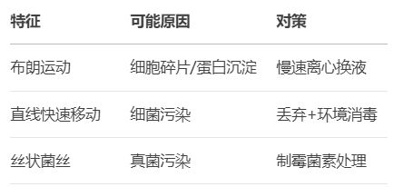 ●隱密污染排查:用無(wú)抗生素培養(yǎng)基培養(yǎng)3天,觀察是否出現(xiàn)支原體(培養(yǎng)液輕微渾濁)或真菌(絲狀物)