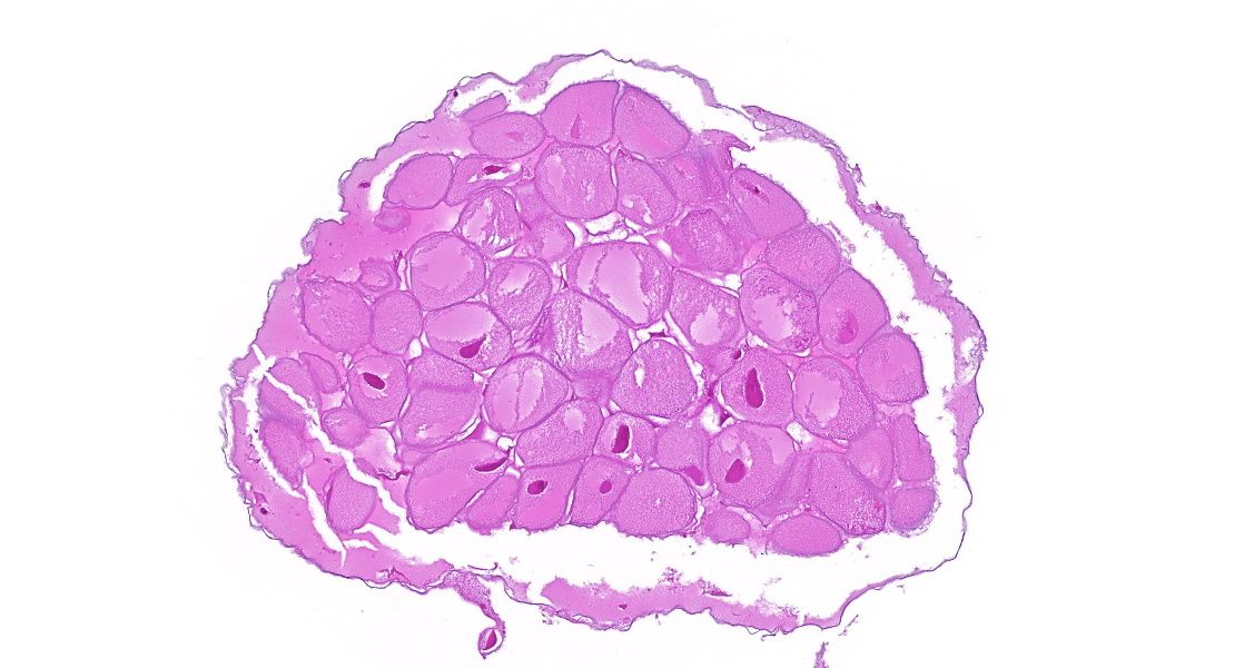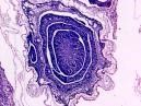蘇木精-伊紅染色法簡稱HE染色法,是最常用的染色方法。蘇木精(hematoxylin)是陽離子染料,能夠?qū)⒓?xì)胞核內(nèi)的嗜堿性物質(zhì)染成藍(lán)紫色。伊紅(eosin)是陰離子染料,能夠?qū)⒓?xì)胞質(zhì)和膠原纖維等染成粉紅色。
