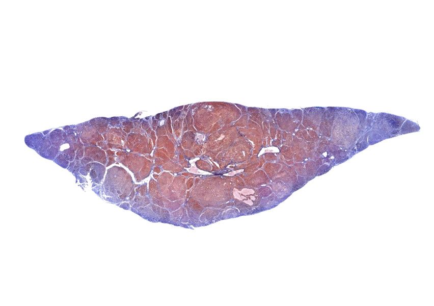 2、Masson復合染色液,經磷鉬酸分化時須用顯微鏡控制,見肌纖維呈紅色,膠原纖維程淡紅色即可;