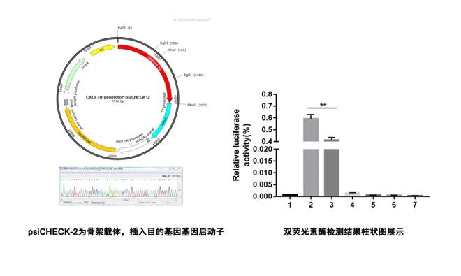 雙熒光素酶檢測轉(zhuǎn)錄因子與基因啟動子區(qū)的結(jié)合及轉(zhuǎn)錄激活情況,右側(cè)為載體圖譜及結(jié)合位點